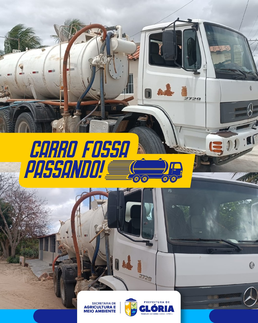 A Prefeitura Municipal de Glória, por meio da Secretaria de Agricultura e Meio Ambiente, segue executando o cronograma de esgotamento com o carro fossa em diversos povoados da zona rural do município.